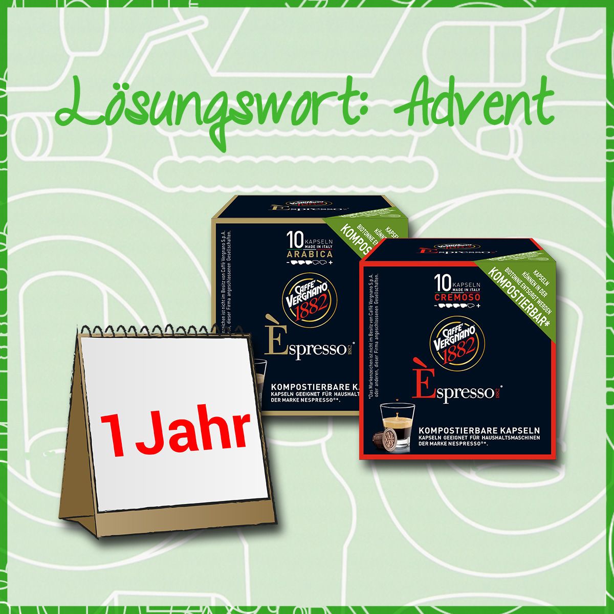 Hier kommt die Lösung des Gewinnspiels aus NOOZ Magazin Dezember. Unter allen richtigen Einsendungen des Lösungswortes "Advent" haben wir einen ganzen Jahresvorrat an Caffè Vergnano-Kapseln für zwei Personen im Wert von 210 € verlost!