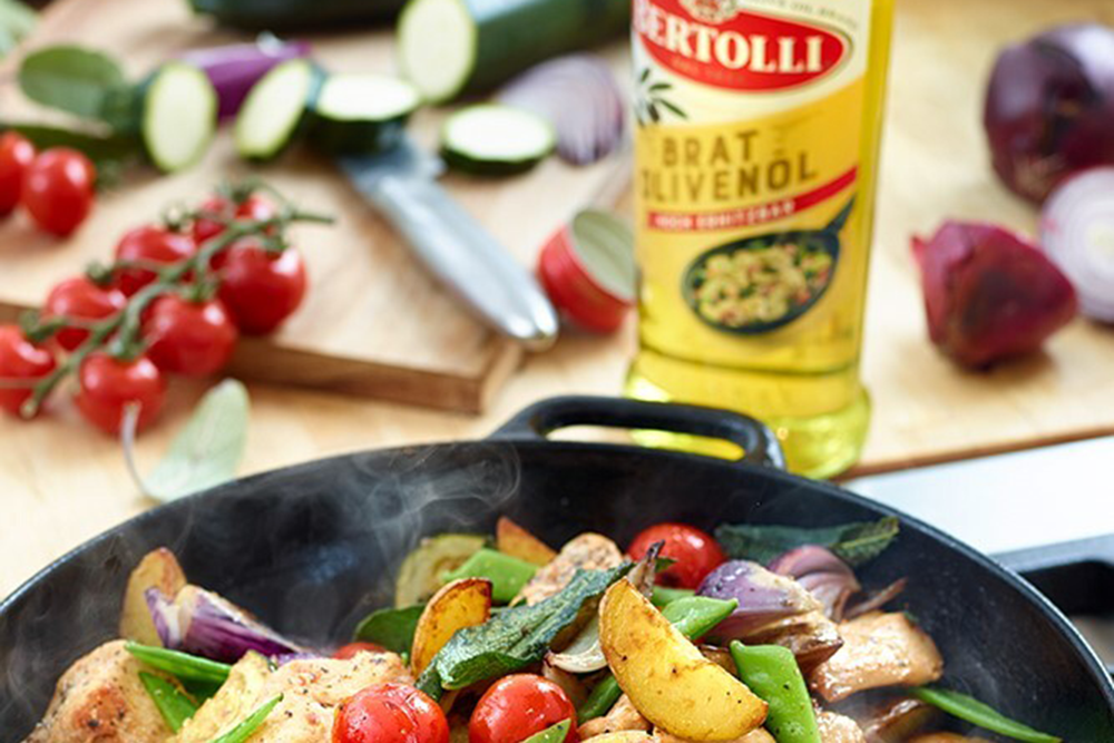 Die leckere Hähnchen-Kartoffel-Pfanne mit BERTOLLI Bratolivenöl ist im Handumdrehen zubereitet und mit frischem Gemüse ideal geeignet für die leichte Sommerküche. Für 4 Personen Zubereitungszeit: ca. 35 Minuten Zutaten 400 g Drillinge, mit Schale, ca. 15 min gekocht600 g HähnchenbrustfiletSalz, Pfeffer1 TL Paprikapulver,…