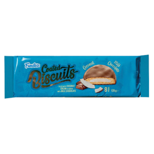 Genieße knusprige Kekse mit einer verführerischen Schicht aus Kokosnuss und feiner Glasur! Fundiez Coated Biscuits bieten den perfekten Snack für zwischendurch. Ob zum Teilen oder selbst Genießen – diese Leckerei macht jeden Moment besonders. Ein Genuss für Kokosfans!