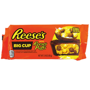 Viele kennen sie und viele lieben sie: Reese’s Cups. Leckere Erdnusspralinen mit Milchschokoladenüberzug. Hier wurden in die Erdnussbutterpraline leckere, crunchy Reese’s Puffs hinzugefügt, um es noch leckerer, nussiger und schokoladiger zu machen. Für dich in der King Size-Variante für doppelten Naschspaß.