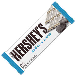 Ein Klassiker aus den USA. Hershey’s Cookies’n’Creme ist eine köstliche weiße Schokolade mit Schokokeksstückchen drin. 1994 wurde diese Süßigkeit erfolgreich auf dem amerikanischen Markt eingeführt und ist inzwischen auch bei uns ein echter Hit. Lasst euch diesen Geschmack nicht entgehen.