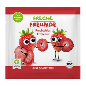 Die Fruchtchips Erdbeere von Freche Freunde werden aus gefriergetrockneten Erdbeeren in 100 %iger Bio-Qualität hergestellt – ein knackiger Snack für Groß und Klein, sorgfältig verarbeitet aus natürlichen Zutaten. Ein erdbeer-starker Genuss für alle Knabberfans!