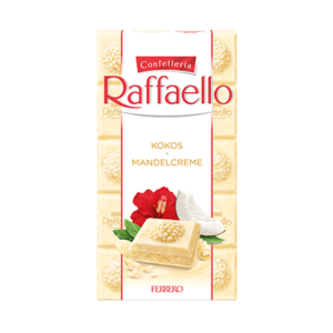 Entdecke die Raffaello Tafel, kreiert für alle Schokoladenliebhaber. Inspiriert von dem einzigartigen Raffaello Geschmack, um dir eine unwiderstehliche Kombination aus Kokos-Mandelcreme zu bieten. Lasse die Seele baumeln und tauche ein in den Sommergenuss mit Raffaello.