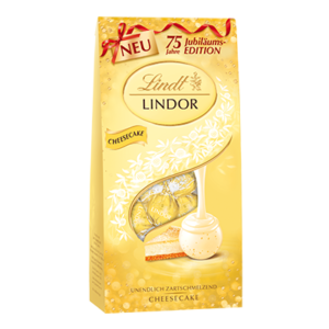 Zum 75-jährigen Jubiläum präsentiert LINDOR eine limitierte Jubiläumsedition: LINDOR Cheesecake. Die Kugeln bestehen aus einer knackigen Hülle aus weißer Schokolade mit Gebäckstückchen und einer himmlisch cremigen Füllung. Sie sind inspiriert von dem beliebten, klassischen Kuchen, der bei Familien- und Geburtstagsfeiern nicht fehlen darf.