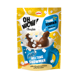 Langeweile in der Tasse war gestern! Die neue OH WOW Trinkschokolade „Mini Melting Snowman Karamell“ überrascht nicht nur mit witzigem Produktdesign in Form eines kleinen Schneemanns, sondern sorgt für echte OH WOW-Momente, wenn er in der Tasse schmilzt. Denn dann geben die kleinen leckeren Schokoladenfiguren ihre innere Füllung frei: Leckeres Karamell und softe Mini-Marshmallows.
