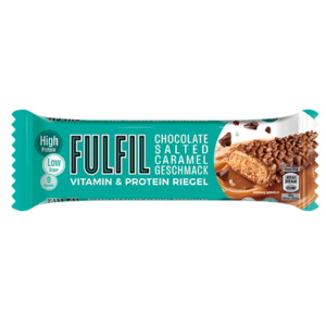 Dieser leckere Proteinriegel mit Salted Caramel Geschmack ist mit Milchschokolade3 überzogen und mit knusprigen Soja-Crisps getoppt. Ein leckerer Snack für nach dem Training oder on the go mit 20 g Protein, 1,4 g Zucker, 9 Vitaminen und 205 kcal pro 55 g Riegel.