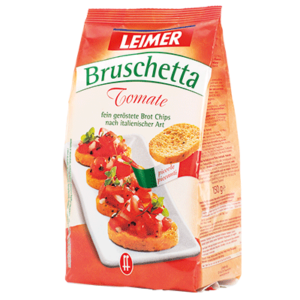 LEIMER Bruschetta Tomate – die italienische Brotspezialität, fein geröstet und knusprig. Ob pur genossen, vielfältig belegt oder als Highlight für Buffets – dieses aromatische Bruschetta-Brot überzeugt immer. Auch als Knabbergebäck ein Genuss für zwischendurch! Ebenfalls erhältlich in den Sorten: KnoblauchBasilikum, Zwiebel-Oregano und Käse.