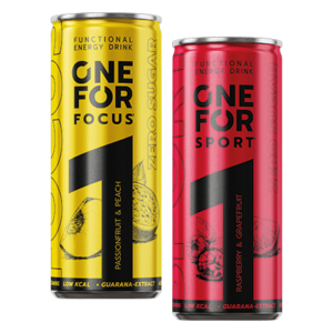 Ob Training oder Konzentration: ONE FOR liefert dir den passenden Boost. ONE FOR Sport unterstützt Kraft, Ausdauer und Performance mit Vitaminen, Mineralstoffen und natürlichem Koffein im fruchtigen Himbeer-Grapefruit-Geschmack. ONE FOR Focus fördert Konzentration und Wachheit mit B-Vitaminen, Pflanzenextrakten und natürlichem Koffein – schmeckt erfrischend nach Passionsfrucht und Pfirsich.