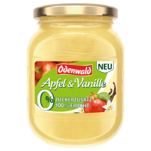Die neue Odenwald Kreation „Apfelmus mit Vanille“ ohne Zuckerzusatz bietet Genuss für die Sinne. Die sorgsam abgestimmte Variation besticht mit edler Bourbon Vanille und wird schonend hergestellt. Verfeinert Desserts, Joghurts oder Frühstücksbowls und sorgt auch pur zum Löffeln für himmlische Verwöhnmomente.