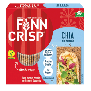 FINN CRISP Chia mit Meersalz, ist die herzhaft-dünne Knäckesorte unter den FINN CRISP Produkten. Gebacken aus 100 % Roggenvollkorn – kombiniert mit dem Superfood Chia und eingebackenem Meersalz. Typisch kräftiger Roggengeschmack, dünn & crispy ist es perfekt für ein Frühstück mit leckerem Frischkäse.
