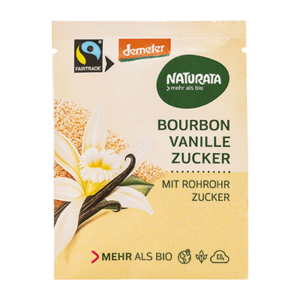 Beim Naturata Vanillezucker handelt es sich um 8 % echte Bourbon-Vanille mit gemahlenem Rohrzucker aus biodynamischer Landwirtschaft. Die Bourbon Vanille besticht durch ein ausgewogenes und vielschichtiges Aroma und wird nicht ohne Grund „Königin der Gewürze“ genannt. Naturata bezieht die Vanille von einer Kleinbauernkooperative aus Madagaskar, genauer gesagt aus der Sava-Region im Nordosten der Insel. Durch die zusätzlichen Fairtrade-Prämien konnten dort verschiedene Gemeinschaftsprojekte umgesetzt werden.