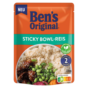 Der Ben’s Original Express Sticky-Bowl Reis bringt dir den Geschmack Asiens direkt nach Hause. Mit seiner klebrigen Konsistenz eignet er sich ideal für herzhafte oder süße Gerichte, aber auch als Basis für deine eigenen Bowl-Kreationen! In nur 2 Minuten kannst du deinen Sticky Bowl-Reis in der Mikrowelle oder auf dem Herd zubereiten. Guten Appetit!