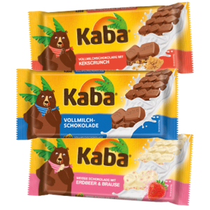 Original Kaba: Kaba ist mehr als nur leckere Trinkschokolade. Entdecke den originalen Kaba Geschmack jetzt als leckere Tafelschokolade! Die Sortenvielfalt reicht von Vollmilchschokolade über Variationen mit leckerem Kekscrunch, Weißer Schokolade mit prickelnder Erdbeer-Brause bis zu den neuen gefüllten Tafelsorten mit Milch- bzw. Erdbeercreme.