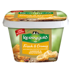Die zeitlich limitierte „Sorte des Jahres“ Kerrygold Frisch & Cremig Frischkäse Cheddar & Röstwiebel besteht aus herzhaftem Cheddar und würzigen Röstzwiebelstückchen. Eine feine Pfeffernote rundet den cremigen Frischkäse aus bester irischer Weidemilch ab. Ideal als Dip, auf kräftigem Brot oder zum Verfeinern von warmen Gerichten.