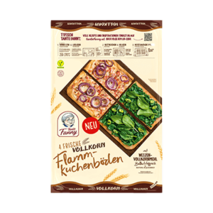 Die Tante Fanny Vollkorn Flammkuchenböden sind super dünn, extra knusprig und in wenigen Minuten genussfertig! Egal ob klassisch herzhaft oder als süße Verführung – mit den Flammkuchenböden kommen alle Flammkuchenliebhaber immer auf ihre Kosten! Dabei ist der Teig ballaststoffreich, vegan und palmfrei. Tante Fanny – Fannytastisch einfach!