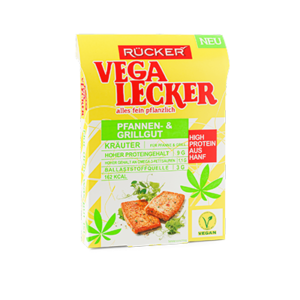 Vega Lecker Pfannen- und Grillgut Kräuter steckt, wie der Name schon sagt, voller Kräuter. Das vegane Grillprodukt auf Hanf-Erbsen Basis steckt außerdem voller Geschmack und Proteine. Vega Lecker Pfannen- und Grillgut gelinkt ganz schnell in der Pfanne und bietet, auf dem Rost zubereitet, leckere Abwechslung beim Grillen.