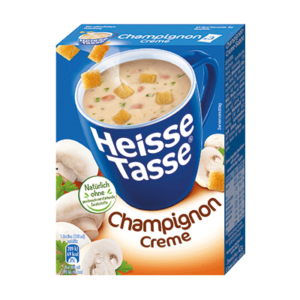 Brauchst du eine schnelle Pause, die dich satt und glücklich macht? Dann probiere doch mal die Heisse Tasse Champignon-Creme-Suppe! In nur 2 Minuten fertig, zaubert sie cremigen Genuss auf deinen Tisch – und das ohne großen Aufwand. Einfach heißes Wasser hinzufügen und schon kannst du dich zurücklehnen und genießen. Schmeck den Unterschied!