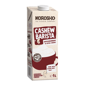 Schäumt und schmeckt, ganz ohne Muuh! Die vegane Cashew Barista von Korosho glänzt mit super Geschmack, toller Aufschäumbarkeit, cremiger Konsistenz und perfekten Nährwerten. Sie ist optimal geeignet für alle, die einen schaumigen Cappuccino, cremigen Shake oder auch ein leckeres Müsli lieben.