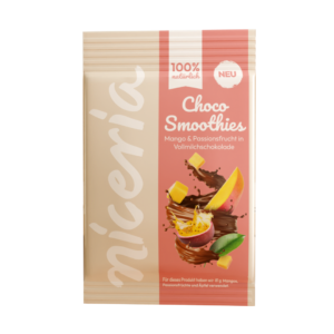 Tropical Vibes only – Die bekommst du mit den niceria Choco Smoothies Mango & Passionsfrucht! Die paradiesischen Früchte sind von einer unglaublich leckeren und feinen Vollmilchschokolade ummantelt. Läuft dir da auch schon das Wasser im Mund zusammen? Dann probiere die 100 % natürlichen Choco Smoothies!