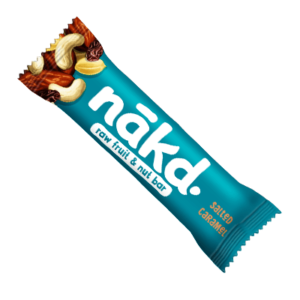 Der leckere nakd Salted Caramel Riegel wird aus 100 % natürlichen und veganen Zutaten hergestellt, ohne Zuckerzusatz. Die Kombination aus Datteln, Rosinen, Cashewnüssen, Erdnüssen etwas Meersalz und einem Hauch Karamellaroma schmeckt unwiderstehlich lecker und ist einfach ideal für zwischendurch und unterwegs.