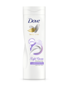 Die neue Dove Night Renew Serum Body Lotion mit Niacinamid wurde speziell entwickelt, um die Haut über Nacht zu regenerieren. Der einzigartige 21 % Skin Renew Complex mit Niacinamid beschleunigt die Zellerneuerung der Haut in nur drei Nächten, verbessert ungleichmäßige Hauttöne und gibt matter Haut ihr Strahlen zurück.