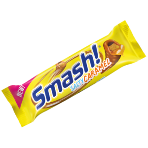 Den kultigen Smash! gibt es auch als knusprigen Schokoriegel. Die perfekte Kombination aus süß und salzig. Mit leckerem Karamell und umhüllt von köstlicher Milchschokolade ist dieser Riegel ein Muss für alle Snack-Fans.