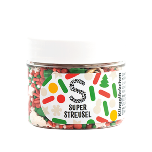 Los geht die Weihnachtsbäckerei! Mit Super StreuselMix „Klingglöckchen“ pimpst du deine Plätzchen ganz easy wunderschön. Schnapp dir am besten deine ganze Family und los geht der StreuselSpaß. Im StreuselMix sind superleckere Schokokugeln und Zuckerstreusel in Form von Schneemann, Tannenbaum, Schneeflöckchen und Sternchen. Alle Super Streusel Mixe werden in Hamburg handvermischt, entsprechen den höchsten Qualitätsstandards und sind frei von AZO-Farbstoffen.
