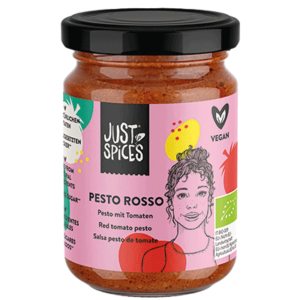 Kannst du sofort essen. Zu jedem Gericht. Ob zu Pasta, Sandwiches, Fleisch oder Gemüse – egal, wozu du das Bio Pesto Rosso isst, es schmeckt wie frisch von dir gemacht! Nur das Glas aufdrehen und aufs Gericht geben. 100 % italienische Tomaten mit Cashewnüssen. Ohne zugesetzten Zucker*.