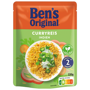 Der Ben‘s OriginalTM Express Curryreis gelingt einfach allen! Verfeinert mit sorgfältig aus- gewählten Gewürzen sind im Handumdrehen leckere und zugleich schnelle Mahlzeiten kreiert. In nur 2 Minuten kannst du deinen Curryreis einfach und bequem in der Mikrowelle oder mit Wasser in 3 Minuten in der Pfanne erhitzen. Guten Appetit!