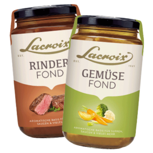 Mit den hochwertigen Lacroix Fonds wird jedes Gericht zum besonderen Geschmackserlebnis. Sie unterstreichen den natürlichen Geschmack – ganz ohne Geschmacksverstärker oder Farbstoffe. Von Rind über Geflügel bis zu Gemüse – für jeden Geschmack gibt’s den passenden Fond. Ob für Suppen, Sauce oder Eintöpfe, hier findest du den perfekten Fond und dein Ostergericht wird zum Highlight auf jedem Tisch.